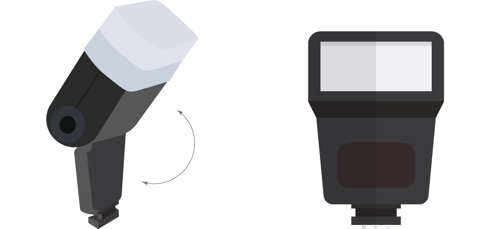 اگر فلاش قابلیت چرخش و حرکت داشته باشد کنترل و گزینه‌های نوری بیشتری در اختیار شما می‌گذارد. نوری که مستقیما به سوژه می‌تابد معمولاً نوری تند است و سایه‌هایی عمیق بر روی سوژه ایجاد می‌کند و پس‌زمینه را به سرعت تاریک می‌نماید. برای نوردهی همان صحنه با نوری نرم‌تر، می‌توان سری فلاش را طوری چرخاند که نور آن به طور غیرمستقیم و با بازتاب از سقف یا دیوار به سوژه بتابد. هنگامی‌که نور فلاش به دیوار تابیده می‌شود، سطح دیوار به منبع نوری بسیار بزرگ‌تر نسبت به فلاش تبدیل می‌شود و سایه‌هایی بسیار نرم‌تر بر روی سوژه ایجاد می‌کند.