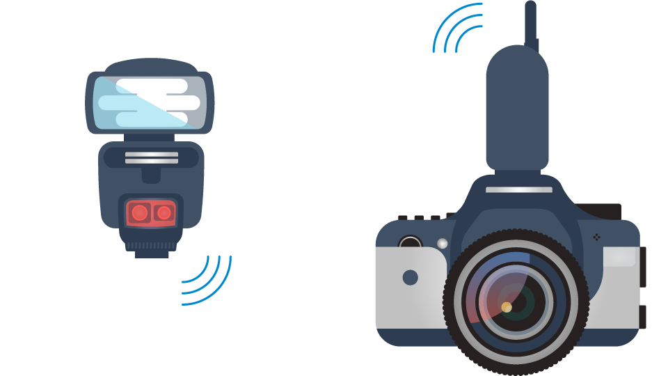 روش دیگر اتصال دوربین به فلاش استفاده از سیستم فرستنده/گیرنده‌ی بیسیم است. این سیستم‌ها از امواج رادیویی، نوری و یا فروسرخ برای ایجاد ارتباط بین دوربین و فلاش استفاده می‌کنند. با استفاده از این سیستم‌ها می‌توان حداکثر کنترل خلاقانه در عکاسی با فلاش را داشت زیرا تقریباً محدودیتی در نحوه‌ی قرار دادن فلاش دوربین خود نخواهید داشت و می‌توانید از چندین فلاش برای یک صحنه استفاده کنید.
