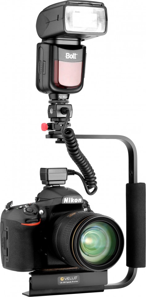 اگر قصد نگه‌داشتن فلاش با دست را ندارید چارچوب‌هایی به نام براکت فلاش در بازار پیدا می‌شود که با استفاده از آن‌ها می‌توان فلاش را در بالا یا کنار دوربین سوار کرد. براکت‌ها معمولاً به محل اتصال سه‌پایه در زیر دوبین وصل می‌شوند و حالت‌های بیشتری برای نگه داشتن دوربین فراهم می‌کنند.