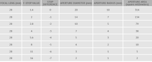 به عنوان مثال ، اگر با f / 1.4 عکس بگیرید ، دهانه ی دیافراگم 314 میلی متر مربع برای دریافت نور باز میشود.