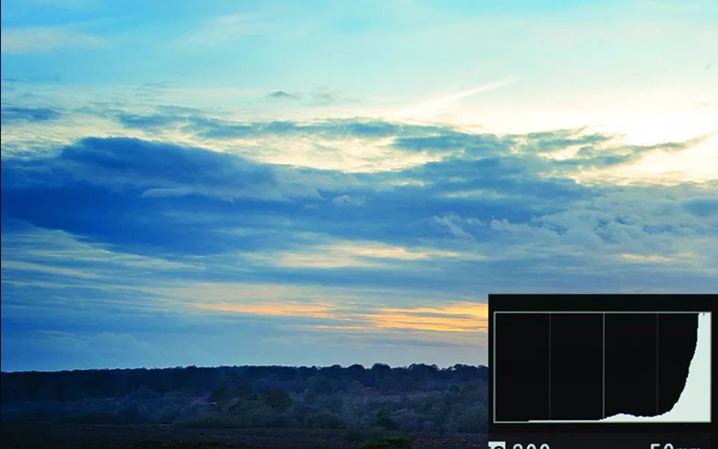 حالت کلیپینگ در عکسهایی با نوردهی بیش از حد یا بسیار تاریک اتفاق میافتد و در این حالت هیستوگرام به شما میگوید که قسمتی از اطلاعات این عکس از بین رفته است؛ اطلاعاتی که در ادامه قله منحنی بوده اما قطع شده و دیگر وجود ندارد.