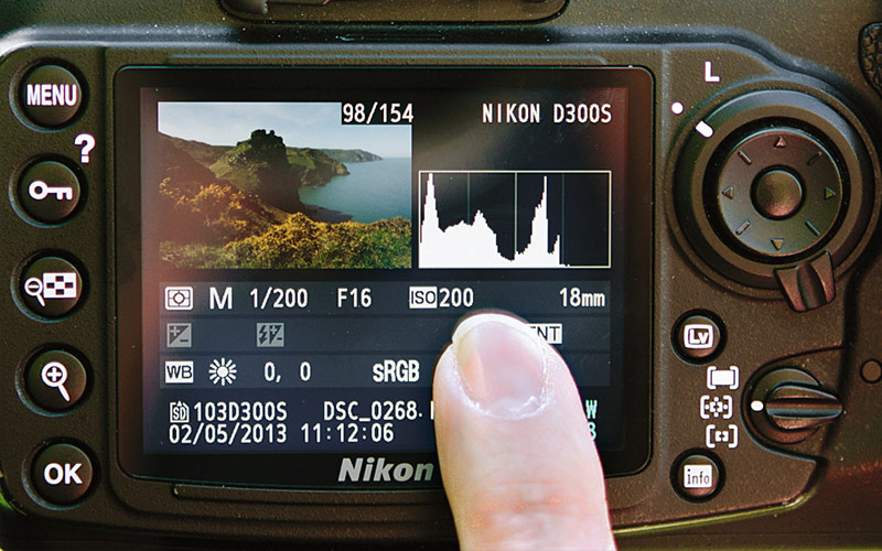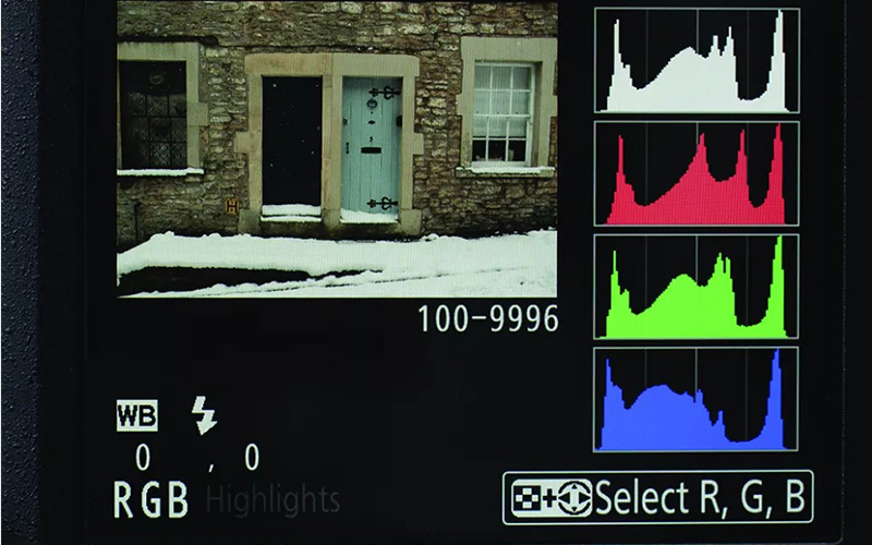 نحوه فعال کردن هیستوگرام در هر دوربینی متفاوت است اما به طور معمول با فشار دادن یکی از دکمههای ناوبری بالا یا پایین میتوانید هیستوگرام هر عکس را مشاهده کنید.