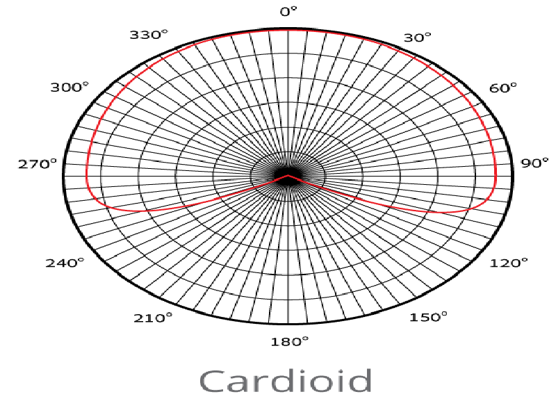 یک میکروفن کاردیوئیدی، بالاترین میزان حساسیت را نسبت به صدایی دارد که از سمت جلو میآید.