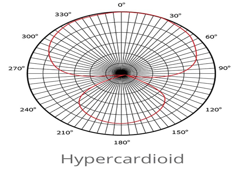 مانند همه میکروفنهای تک جهت، این الگوی قطبی ابر کاردیوئید حساس ترین حالت را در یک جهت واحد ارائه خواهد داد.