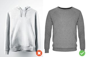 عکسبرداری از محصول نیاز به مقداری آماده سازی دارد. برای مثال، به این تصاویر نگاه کنید و بگویید کدام یک جذاب تر است. هودی سمت چپ به دلیل چین و چروک هایی که دارد ممکن است به سختی نظر هر خریدار را به خود جلب کند. حتی نقص های کوچک مانند لکه ها می تواند تصویر محصول شما را خراب کند و مشتریان به سمت رقبای شما بروند. اگر قبل از عکاسی مقداری وقت صرف اتو کردن لباس کنید، می توانید از آن جلوگیری کنید و یا می توانید آن را در فتوشاپ ویرایش کنید.