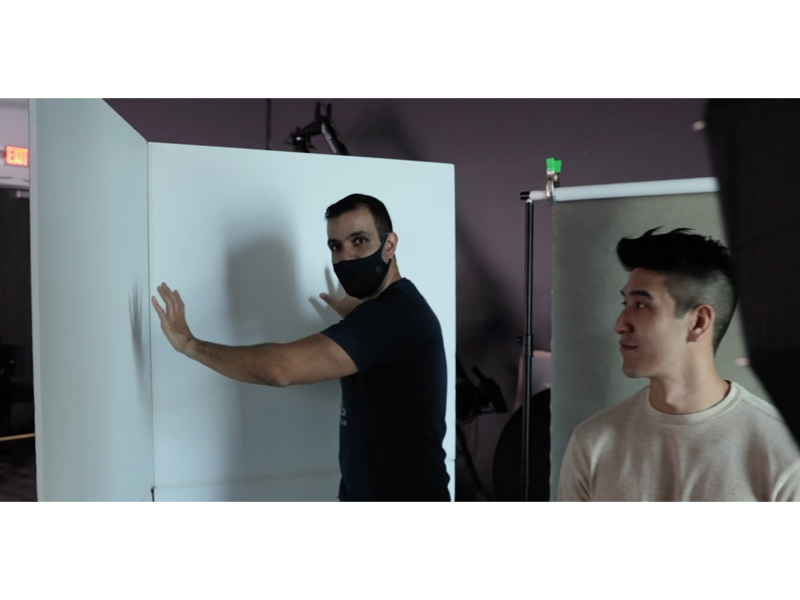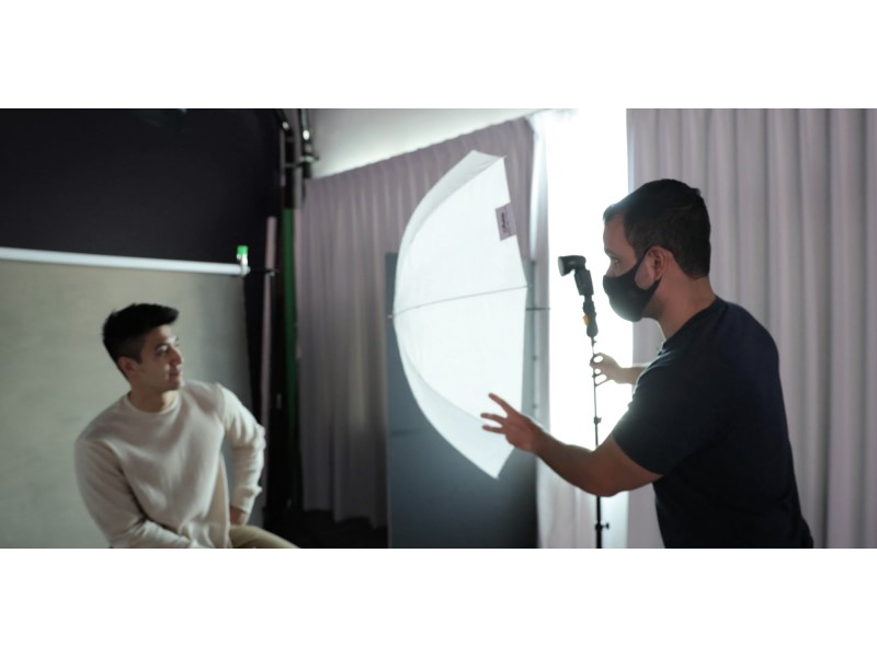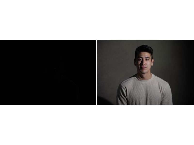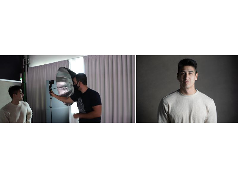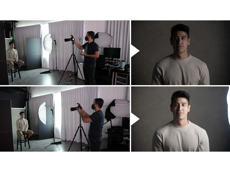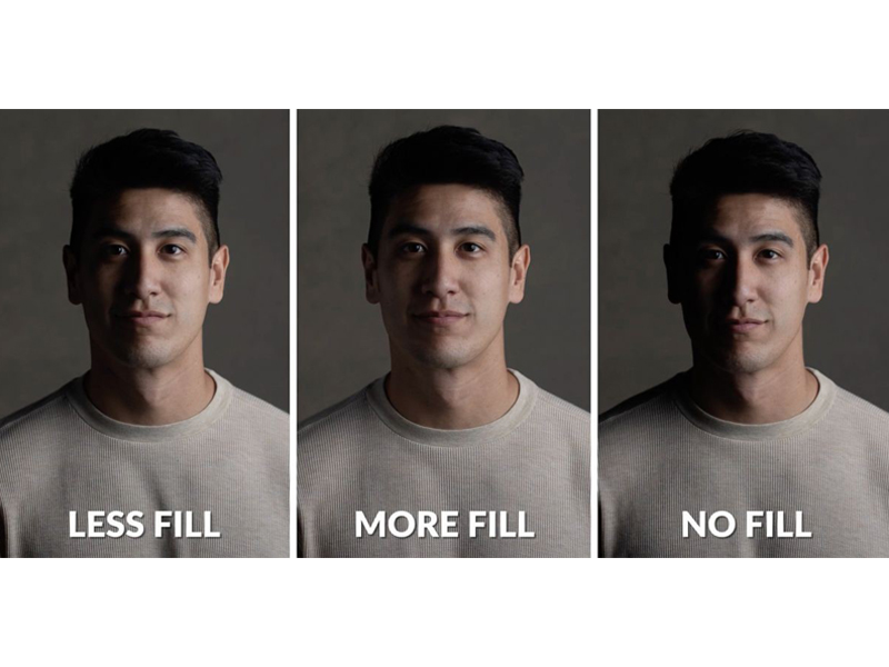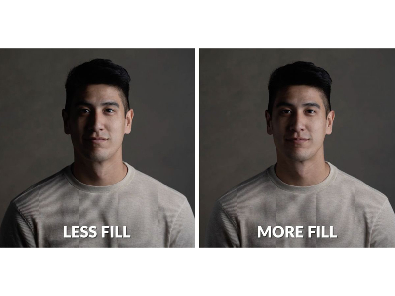 با استفاده از پرتاب نور استاندارد از طریق چتر ، می توانیم یک منبع نور پراکنده بزرگ تر ایجاد کنیم ، آن را در کنار سامی قرار دهیم و بدون نگرانی از پر کردن نور ، یک عکس بگیریم. سپس ، می توانم نور پرتری را با v-flat اضافه کنم. توجه کنید که وقتی v-flat را نزدیک می کنم چه اتفاقی می افتد. من به غیر از نزدیک کردن v-flat هیچ تغییری ایجاد نکردم. به تفاوت سایه های صورت سامی نگاه کنید. ما این را باز شدن سایه ها می نامیم زیرا اساساً سایه ها را کمی باز یا روشن می کنیم.