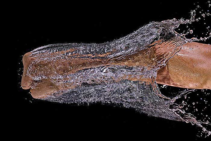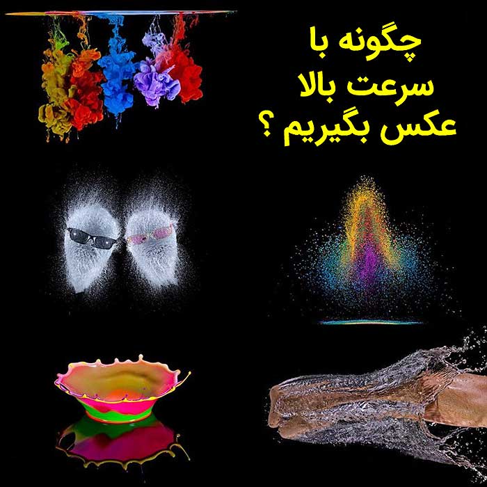 دوربین را به همراه کنترل راه دور روی سه پایه نصب کنید. از حداقل حساسیت ( ISO 100) شروع کرده و تنها در صورتی که نور فلاش کافی نباشد آن را افزایش دهید.سپس فوکوس را در حالت دستی تنظیم کرده و دیافراگم را بین f/11-f/16 قرار دهید. از دستیار خود بخواهید به محض روشن شدن فلاش، دکمه شاتر راه دور را فشار دهد. وظیفه شما این است که با یکدست اکشن را انجام دهید ( انفجار بادکنک، ریختن قطره آب و . . .) و با دست دیگر فلاش را روشن کنید. زمان بندی این اعمال احتیاج به تمرین دارد اما در نهایت موفق خواهید شد.