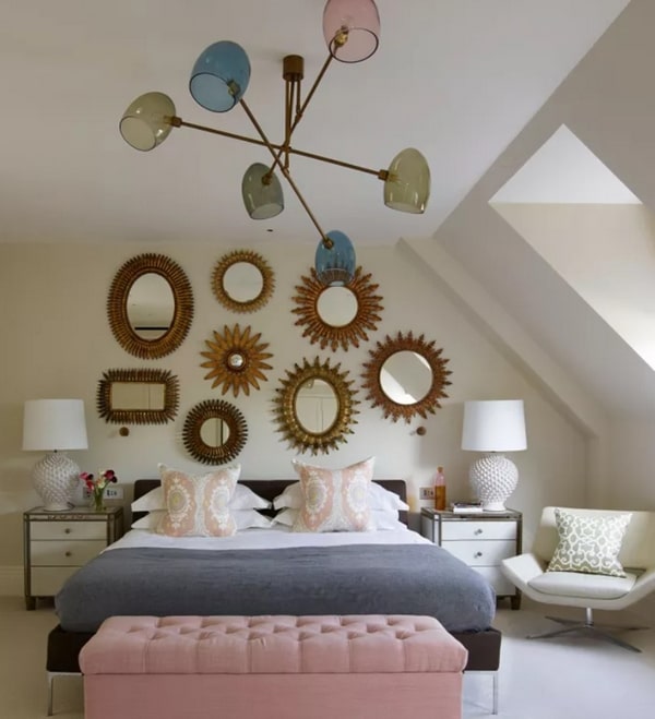 یکی از بهترین و ایدهآلترین ایدههای نورپردازی اتاق خواب، استفاده از ترکیب نورهای مختلف و آینههاست. خصوصا برای فضاهای کوچک و اتاق خوابهایی با فضای محدود، استفاده از این تکنیک نورپردازی میتواند فضای اتاق را بزرگتر و دلبازتر جلوه دهد. سعی کنید نورها و چراغهای مورداستفاده در آینهها انعکاس یابند.