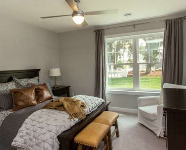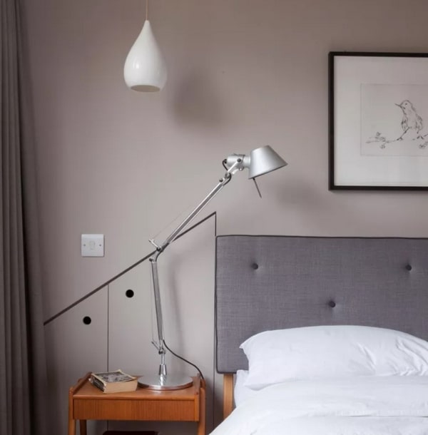 همانطور که در این اتاق خواب خاکستریرنگ نشانداده شده، همیشه مطمئن شوید که یک نور جهت مطالعه و یک منبع نور محیطی در فضای اتاق فراهم شده است.