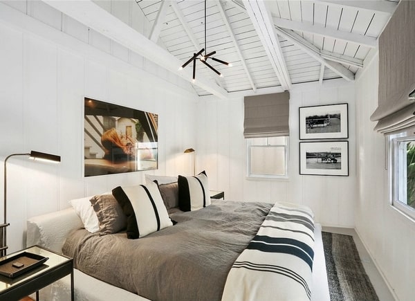 میتوان با افزودن منابع نور به اتاق خواب هم روی جنبههای زیبایی آن کار کرد و هم نورهای کاربردیتری را به اتاق خواب اضافه کرد. در ایده نورپردازی اتاق خواب زیر مشاهده میکنید که استایل نورپردازی یک اتاق خاکستریرنگ با چراغ آویز سقفی سفیدرنگ و یک چراغ رومیزی دوبرابر شده است.