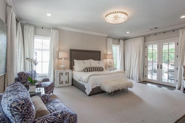 علاوه بر این برای افراد جسور، استفاده از یک لوستر افزودنی عالی به اتاق خواب، به آن فضا حس عظمت و شکوه میبخشد. اگر سقف اتاق خواب خیلی بلند نیست، میتوان از گزینههای آویز کوتاه بالای تختخواب یا چراغهای سقفی فرورفته نیز استفاده کرد.