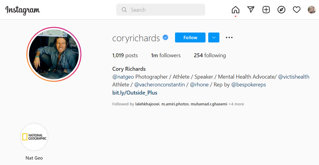 کوری ریچاردز دارای سابقه حرفهای در کوهنوردی و عکاسی است. او که عکاس نشنال جئوگرافیک است تا به حال سه بار برای صعود به اورست رفته است. موضوعات مورد علاقه او عکاسی ورزشی، عکاسی از سخنرانیها و رویدادهای اجتماعی و عکاسی حمایت سلامتی روانی جامعه است. موضوعاتی که ریچاردز برای عکاسی انتخاب میکند همان چیزهایی است که باید در جامعه دیده و آگراندیسمان شود. عکاسی ورزشی تو بیشتر شامل عکاسی از کوهنوردان و اسکی است. مناظر باشکوه کوههای پوشیده از برف و حضور انسان در آنها با فلسفه ریچاردز تبدیل به دیدنیترین عکسهای جهان شده است. ریچاردز در اینستاگرام میلیون فالوور دارد.