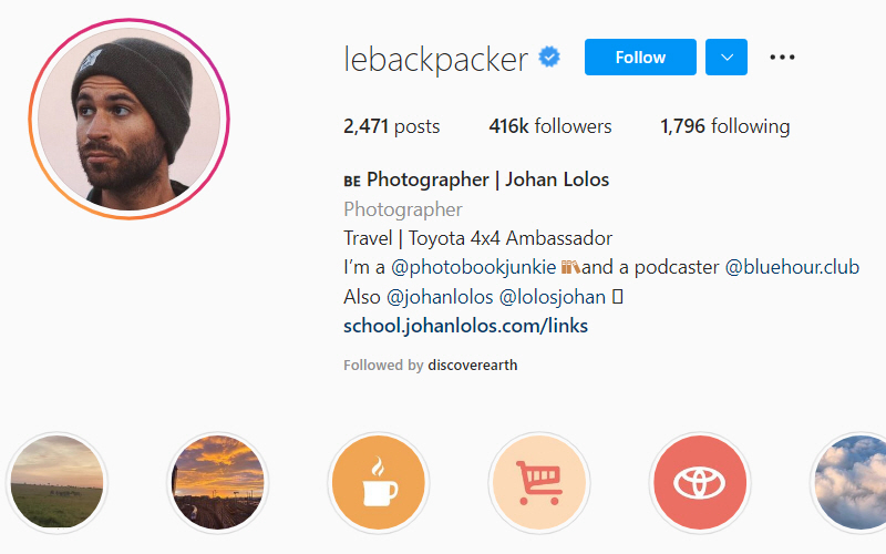 یوهان لولوس 34 ساله پادکستر و فیلمساز و عکاس ، پیجی با نام کولهگرد (lebackpacker) دارد. که نزدیک به 500 هزار نفر فالور دارد. او همچنین در سفرهایش سفیر برند تویوتا است. یوهان که اصلیت یونانی-بلژیکی دارد یک عکاس خودآموخته است و در شبکههای اجتماعی معروف به کولهگرد است. او کتابی شامل عکسهای بینظیر از سفر 5 ماهه به اروپا دارد.