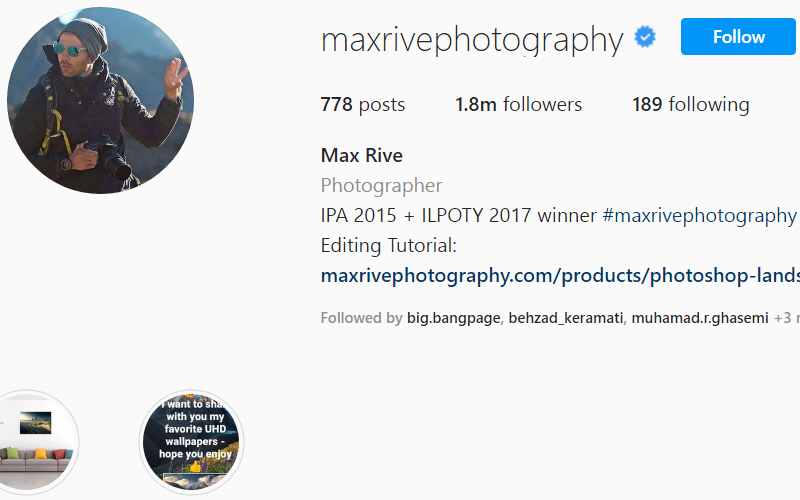 مکس ریو از عکاسان کشور زیبای هلند با سبکی بیعیب و نقص است. او 1.8 میلیون فالور در اینستاگرام دارد. سبک زندگی سالم، سفر مداوم و زندگی در طبیعت و ویدئوها و عکسهای امیدبخش و مفید راجع به ارزش زندگی توانسته او را در چنین جایگاه منحصر به فردی قرار دهد. علاقهمندان او فقط جامعه عکاسان نیستند. مکس ریو از 2008 شروع به عکاسی و اشتراک گذاری عکسهایش کرد. او پس از اینکه از یک سانحه هوایی زنده بیرون آمد شروع به سفرهایش به دور دنیا کرد. امروزه او تورهای عکاسی برای علاقهمندان برگزار میکند و دارای بهترین ویدئوهای آموزشی در یوتیوب است.