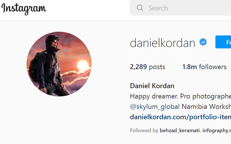 دانیل کردان عکاس اهل روس با 1.8 میلیون فالور است. او هنرآموز نقاشی هنرستان و فارغالتحصیل فیزیک کوانتوم از دانشگاه است ولی طبیعت تنها الهام بخش او بوده است. او در دانشگاه سردبیر مجله کنتیننت اکسپدیشن میشود و با نوشتن مقالههایی با موضوعات عالی راجع به سفر مسیرش را پیدا میکند. نوشتههای او آنقدر خوب بودند که با محتوای نشنال جئوگرافیک برابری میکردند. دانیل کردان جوایز زیادی در مسابقات عکاسی روسیه دریافت کرده است. او بیشتر وقتش را در نروژ و جزایر لوفوتن و یا در جنگلهای توسکانی میگذارد و گروههایی از اروپا، بریتانیا، آمریکا و روسیه را برای سفر راهنمایی میکند. زندگی دانیل الگوی بسیاری از جوانان و عکاسان آماتور و حرفهای در دنیاست.