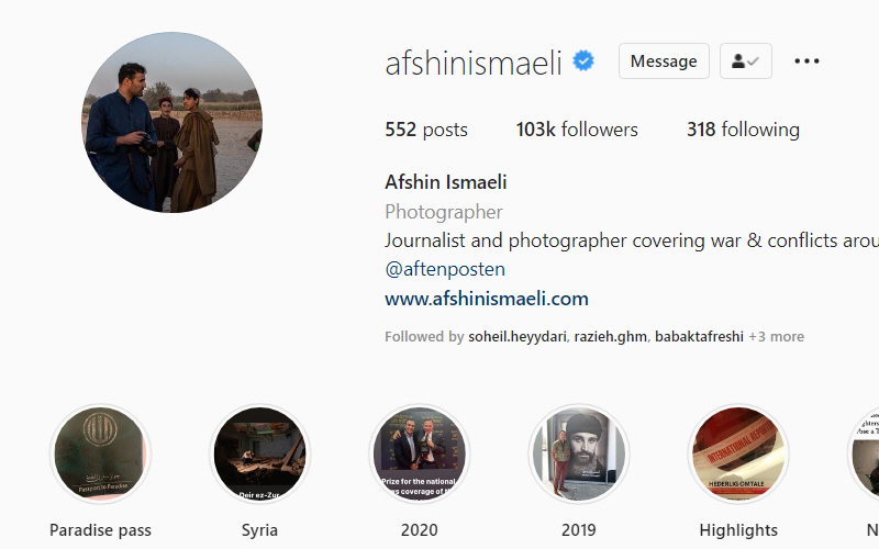 افشین اسماعیلی معتبرترین عکاس خبری و روزنامهنگاری است که درگیریها و وقایع جنگی در سراسر دنیا را پوشش میدهد. عکسهای او علاوه بر روایت جنگ، حاوی نکات ریز و درشت مهمی از جنگ است. با دیدن عکسهای با ارزش افشین اسماعیلی میتوان با حقیقت و وخامت اوضاع در نواحی جنگی و وضعیت مردم این نواحی آشنا شد و درد و رنج آنها را به درستی درک کرد. اگر میخواهید دنیا را بدون فاصله ببینید عکسهای افشین اسماعیلی را دنبال کنید.