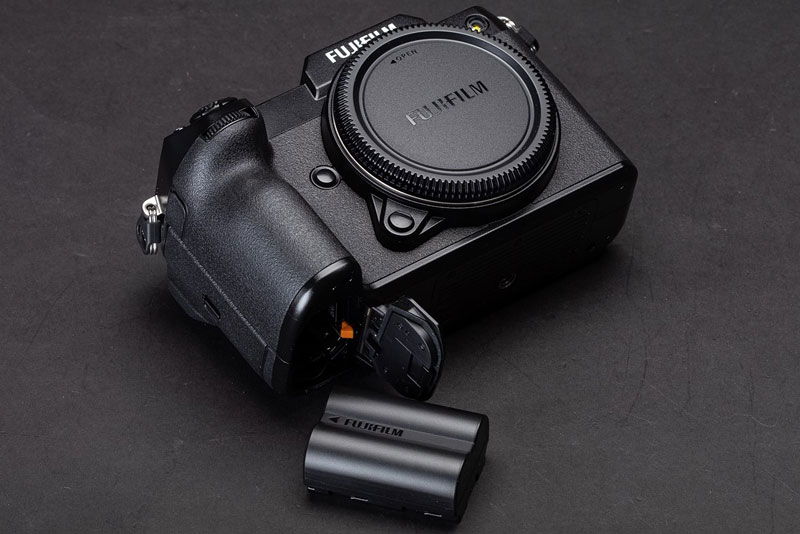 مدل GFX 100S از دو اسلات کارت حافظه UHS-II بهره می برد که امکان عکاسی پیاپی با سرعت 5 فریم در ثانیه را به کاربر می دهد. یک صفحه نمایش 3.2 اینچی 2.36 مگا دات نیز بر روی یک پایه دو محوره نصب شده که به شما اجازه می دهد هم در حالت افقی و هم عمودی به صورت غیر مستقیم Off-axis عکاسی کنید.