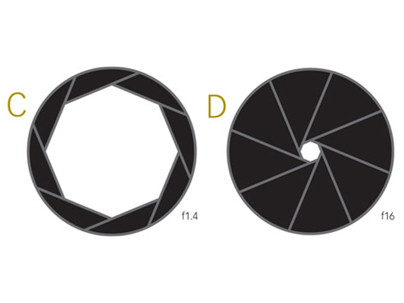 از طرفی دیگر هرچه عدد دیافراگم را پایین بیاوریم روزنه بزرگتر میشود پس نور بیشتری دریافت میکنیم ولی عمق میدان کم است.