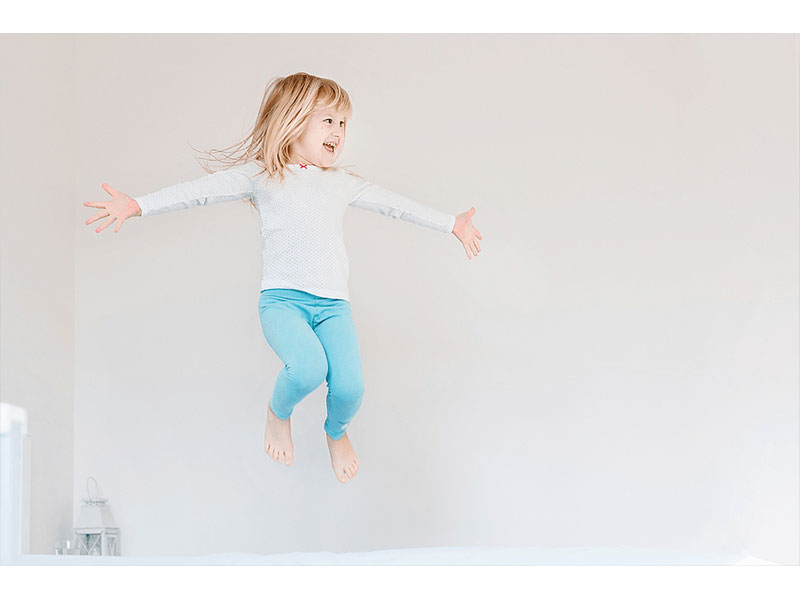 یک ترفند برای عکاسی از کودکان در خانه هنگام بالا و پریدن این است که هنگام عکاسی تا جای ممکن از زاویه پایین عکس بگیرید، این باعث میشود که طوری به نظر برسد که انگار بیشتر پریدهاند.