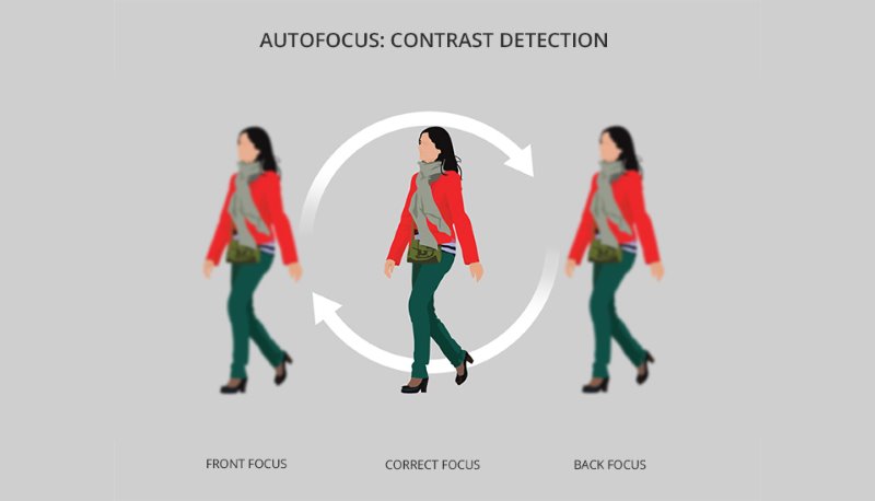 این سیستم فوکوس از آینه دوربین برای جدا کردن نور ورودی به تصاویر مختلف استفاده میکند. دوربین این تصاویر جدا شده از هم را با هم مقایسه میکند و به سرعت میفهمد که کدام تصویر به تصویر اصلی نزدیکتر است و همان را برای انتخاب جهت حرکت لنز انتخاب میکند. به همین دلیل سرعت این فوکوس بسیار بالاست.