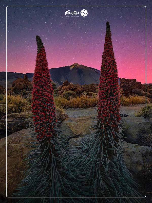 شب 10 مه یکی از فراموشنشدنیترین لحظات از زمانی بود که به عنوان عکاس شروع به کار کردم. به پارک ملی تیده در تنریفه رفتم با این قصد که یک عکس دایرهای از قطب شمال با تاکیهای بومی در حال شکوفه گرفتن بگیرم. پس از تنظیم دوربین و پیدا کردن ترکیب مناسب، شاتر را فشردم. به تعجب من، صفحه نمایش دوربین رنگ قرمزی را در افق نشان داد. این نور آلودگی نوری نبود، بلکه چیزی بود که قبلاً هرگز ندیده بودم.