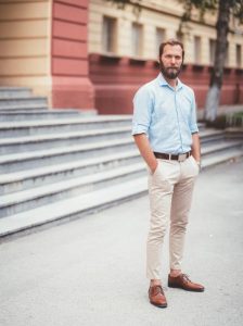 عکس قدی نیز یکی دیگر از ایده هایی است که میتوانید از آن استفاده کنید.هنگام استفاده از این ژست ، از مدل بخواهید وزن خود را به یک پا قرار دهد.همانطور که در بالا مشاهده می کنید ، وزن این مرد کمی بر روی پای چپ اوست و باز بودن پاهای او باعث میشود این ژست مردانه به نظر برسد.
