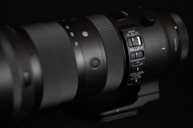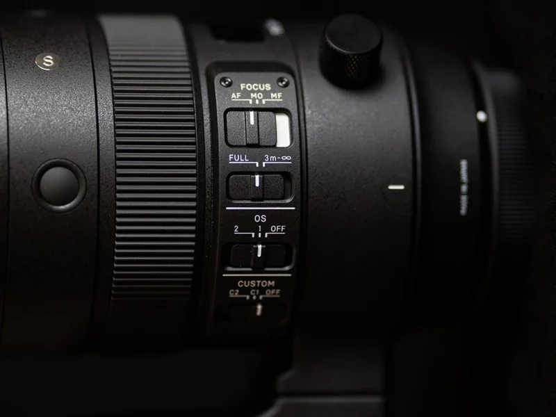 سمت چپ لنز چهار سوئیچ وجود دارد؛ یکی برای فوکوس (خودکار، تنظیم دقیق، دستی)، یکی برای محدوده فوکوس (کامل، 3 متر تا بینهایت)، یکی برای حالت لرزشگیر (خاموش، 1، 2) و نهایتاً آخری برای حالتهای سفارشی (C1، C2 و خاموش) که از طریق نرمافزار سیگما و اتصال USB قابل تنظیماند. محل قرارگیری سوئیچها کاملاً مناسب است و تغییر وضعیت آنها هم حس خوبی به کاربر میدهد.