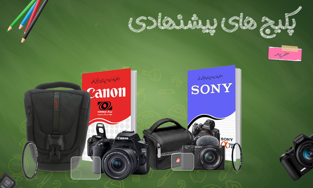 پکیجهای دوربین اولی ها : ما پکیجهایی طراحی کردهایم که شامل دوربین عکاسی ، لنز و تجهیزات مورد نیاز برای شروع معتبر هستند.