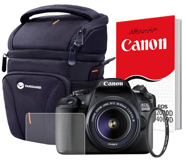 - دوربین کانن Canon EOS 2000D + EF-S 18-55mm 18-55mm III همراه با کیت لوازم جانبی
