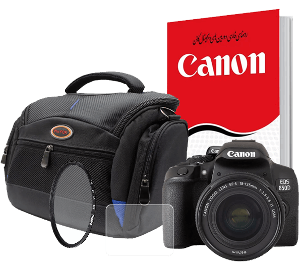 - دوربین کانن Canon EOS 850D kit EF-S 18-135mm f/3.5-5.6 IS USM همراه با کیت لوازم جانبی