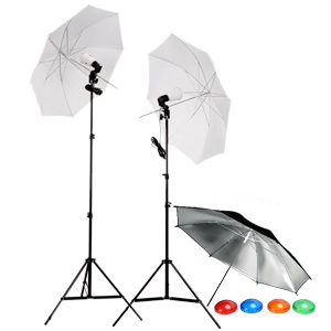 اما در برخی از کیتها میتوانیم چترهای دیفیوزر، چترهای سفید، کاسههای نور یا سایهساز (Shader) همراه با زنبوری را ببینیم.