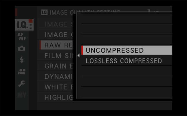 دوربینهای نسل اول سری X فوجی تنها میتوانستند با عمق رنگ 12-bit عکس بگیرند، اما دوربینهای جدیدتر این سری مانند Fujifilm X-Pro2 میتوانند فایلهای خام را با عمق رنگ 14-bit ذخیره کنند. اگرچه در این دوربینها نیز امکان انتخاب عمق رنگ وجود ندارد، اما میتوانید از منوی آن، نوع فشردهسازی Lossless را انتخاب کنید. منوی Loosy هم کلاً ندارند.