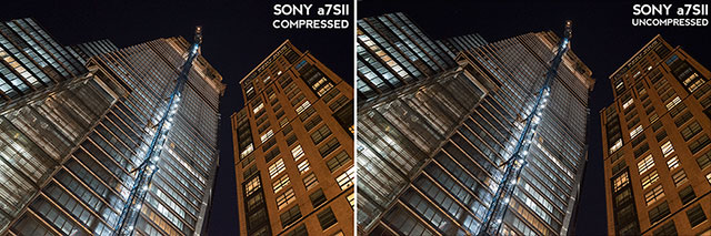متأسفانه تمامی دوربینهای سونی که در حال حاضر در بازار موجودند، از فرمت خام فشردهسازی شده Loosy 11 + 7 bit delta استفاده میکنند. شخصاً نتوانستم دلیلی برای انتخاب این فرمت پیدا کنم و اگرچه تجربه شخصیام با فایلهای خام این دوربینها فوقالعاده بوده است، اما به نظر میرسد این فشردهسازی به از دست رفتن بخشی از اطلاعات میانجامد.