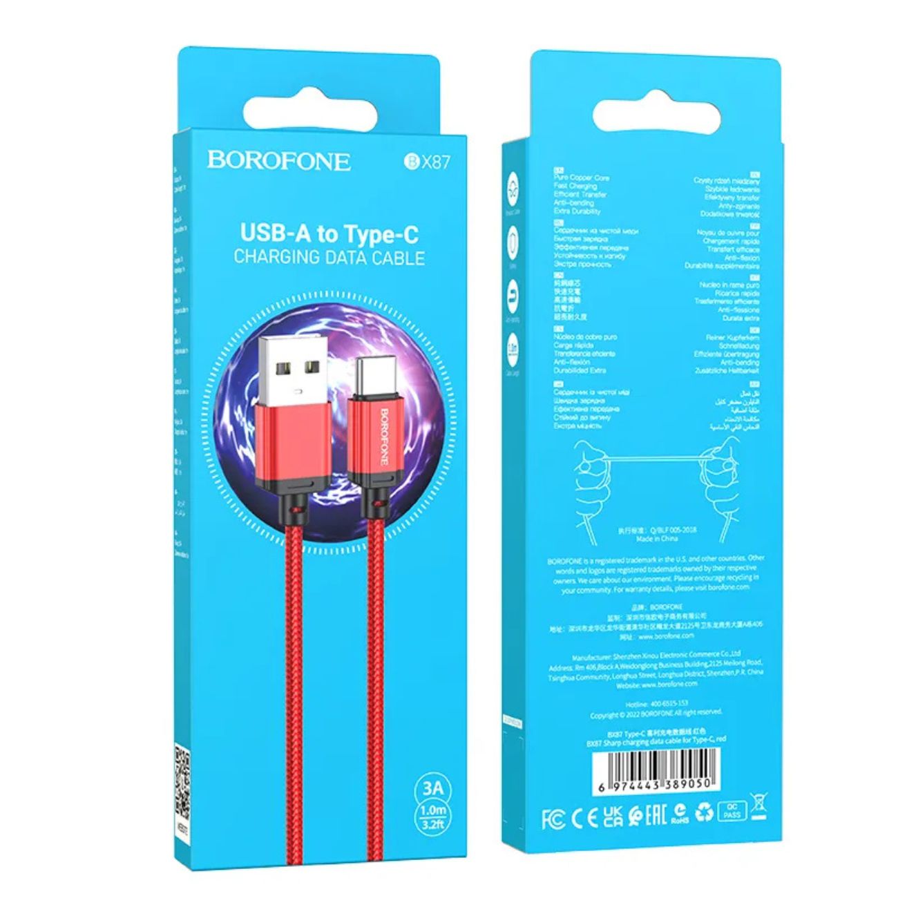 کابل شارژ تایپ سی بروفون BOROFONE BX87 USB to USB C charging data cable red