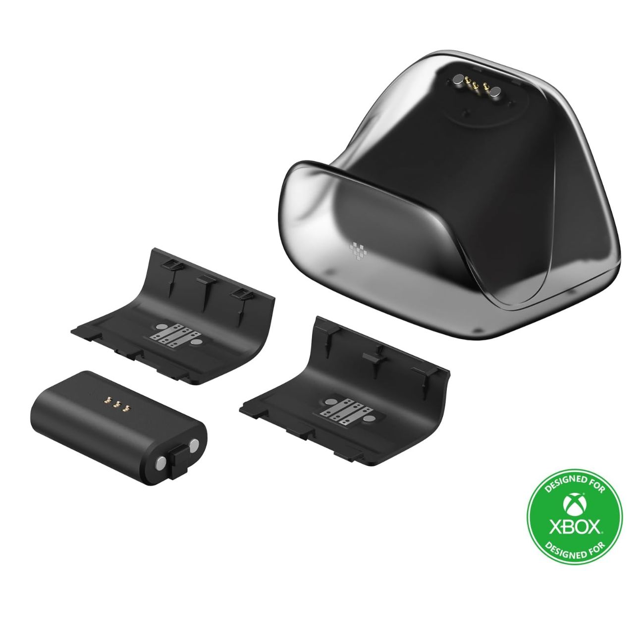 این داک شارژ به شکلی طراحی شده که هم با دستههای نسل جدید (Xbox Series X|S) و هم با دستههای نسل قبلی (Xbox One) سازگاری کامل داشته باشد. درون جعبه دو عدد درپوش باتری مخصوص برای هر دو نسل قرار داده شده است تا هیچ محدودیتی برای استفاده نداشته باشید.