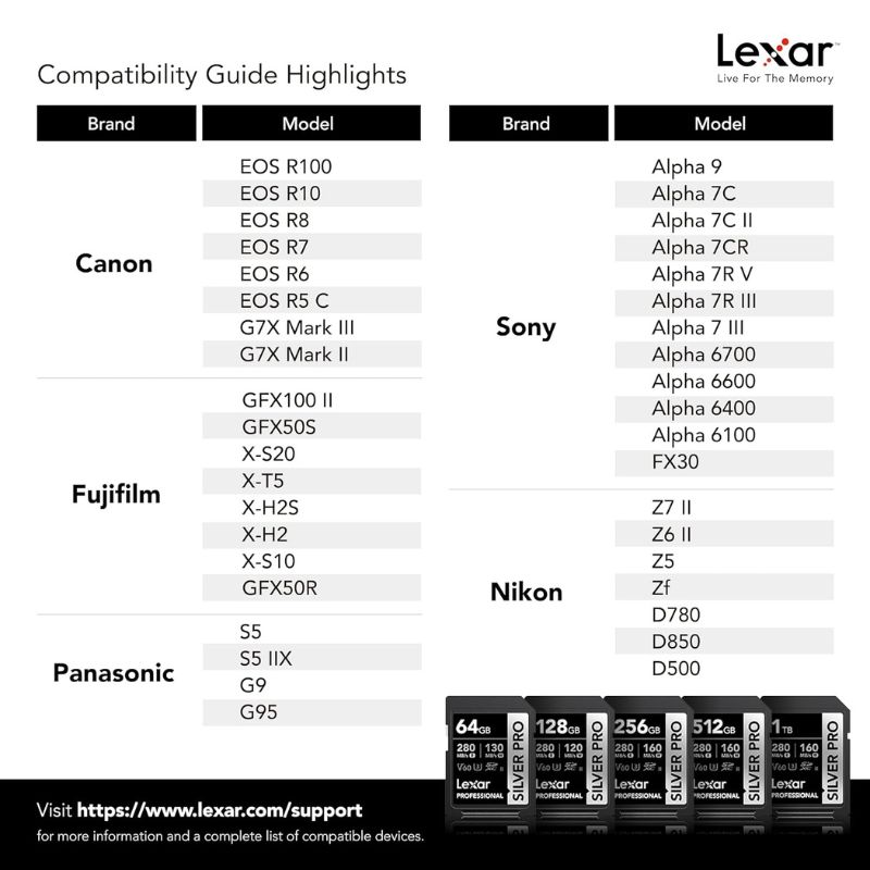 Lexar 128GB Professional SILVER PRO SD UHS-II SDXC Memory Card
