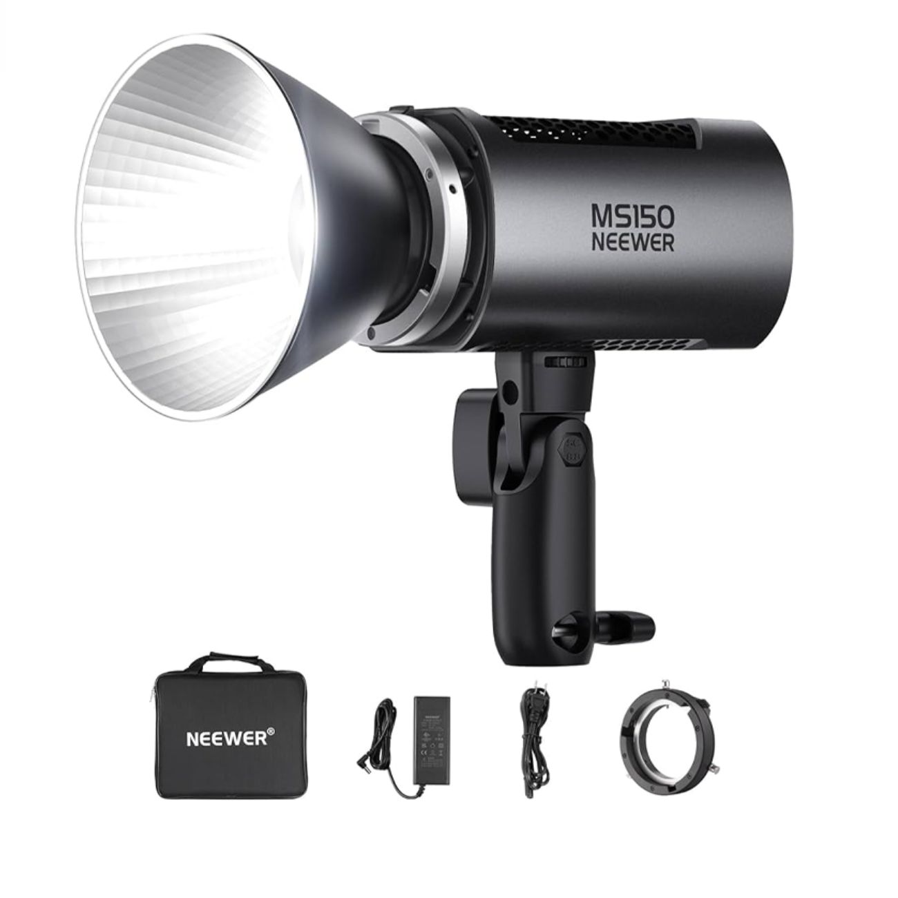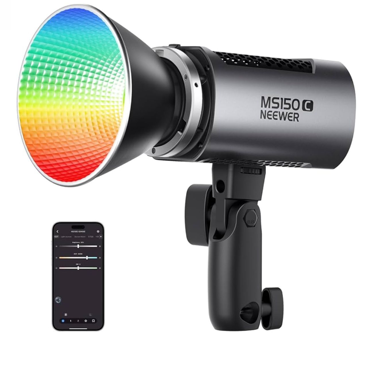 نور MS150C از سیستم کنترلی Neewer Infinity پشتیبانی میکند؛ این یعنی شما میتوانید دهها شاخه نور را از طریق گوشی هوشمند خود مدیریت کرده و سناریوهای نوری پیچیده ایجاد کنید. همچنین ۱۷ افکت نوری پیشفرض مانند رعد و برق، نور شمع و فلاش پاپاراتزی به شما اجازه میدهد بدون نیاز به تدوین پیچیده، اتمسفر صحنه را تغییر دهید. سیستم تغذیه منعطف این دستگاه، یکی دیگر از نقاط قوت آن است؛ شما میتوانید هم با آداپتور برق شهری و هم با باتریهای V-mount (بوسیله کابل مبدل) در فضاهای باز بدون برق، از قدرت کامل ۱۵۰ واتی آن استفاده کنید.