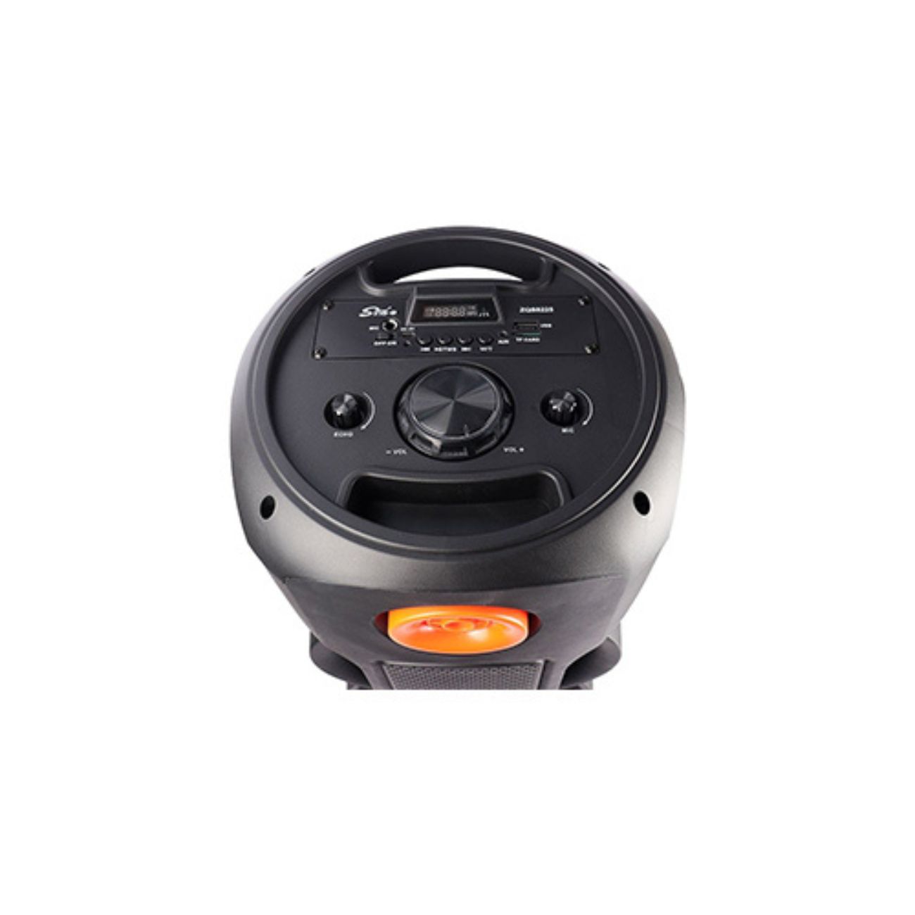 اسپیکر شارژی زد کیو اس ZQS 8225 یکی از بهترین گزینهها در بازار است. این محصول با بهرهگیری از دو سابووفر 8 اینچی، صدایی با حجم بالا و پرتاب فوقالعاده تولید میکند که بهراحتی فضاهای متوسط و بزرگ را پوشش میدهد. طراحی بدنه این اسپیکر به سبک پارتیباکسهای مدرن انجام شده و وجود چرخ و دسته در قسمت بالایی، جابهجایی آن را بسیار آسان کرده است.