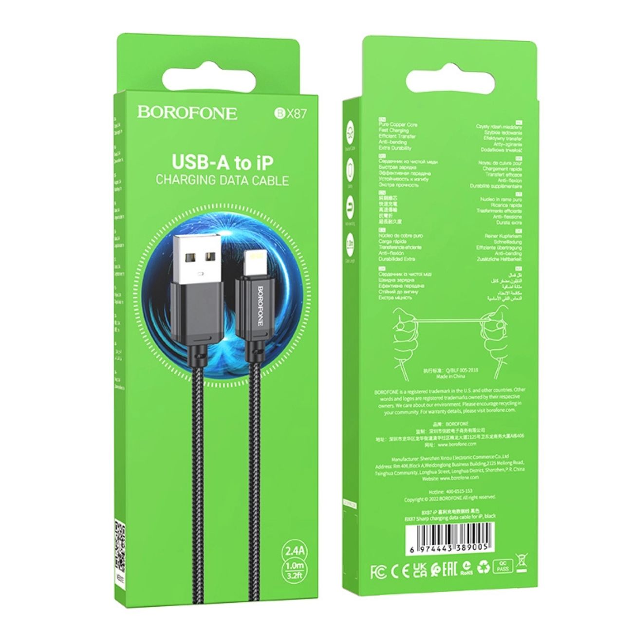 کابل شارژ و انتقال لایتنینگ به بروفون USB مدل BX87 شارپ (BOROFONE BX87 Sharp، کابل دیتا شارژ USB به لایتنینگ) یک راه حل شارژ و سینک داده‌ای بادوام و باکیفیت برای تمام دستگاه‌های اپلیکشاپ پورت لایتنینگ است . این محصول با طراحی بر دوام و عملکرد سریع شده تا نیاز روزانه کاربران به یک کابل مطمئن را انجام دهد.