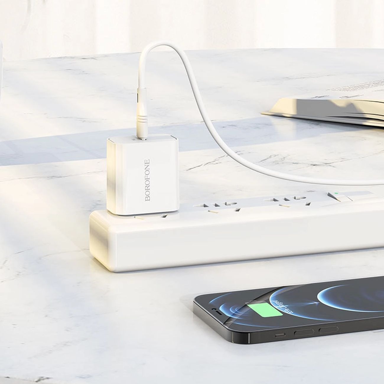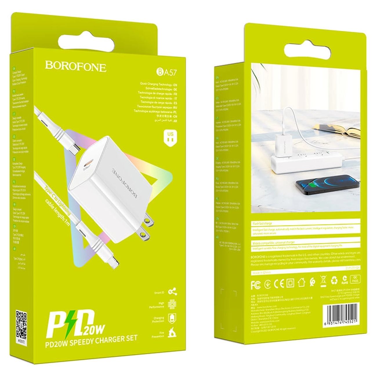 شارژر دیواری Borofone BA57A با توان ۲۰ وات و فناوری PD، شارژی سریع و مطمئن برای گوشیهای آیفون فراهم میکند. این شارژر با بدنه مقاوم ABS + PC و پورت USB-C طراحی شده است و در بستهبندی آن یک کابل ۱ متری تایپسی به لایتنینگ گنجانده شده است، تا بدون نیاز به خرید جداگانه کابل، دستگاه خود را شارژ کنید.