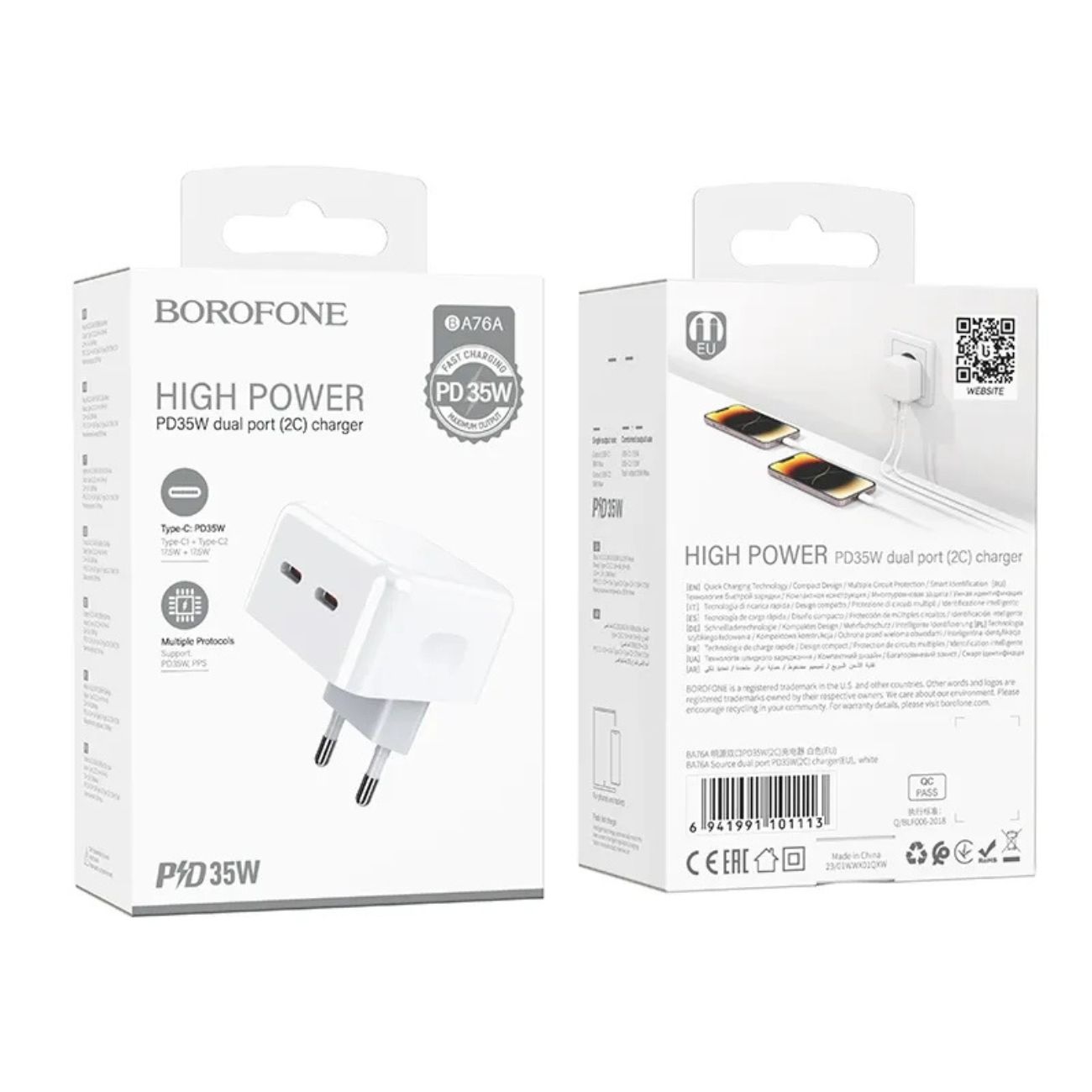 اداپتورشارژر فست شارژ 35 وات بروفون مدل BA76A یک آداپتور دیواری قدرتمند و مطمئن برای کسانی است که به دنبال شارژ سریع و ایمن دستگاههای خود هستند. با توان خروجی 35 وات، این شارژر توانایی تأمین انرژی لازم برای دستگاههای پرچمدار و تبلتها را دارد.