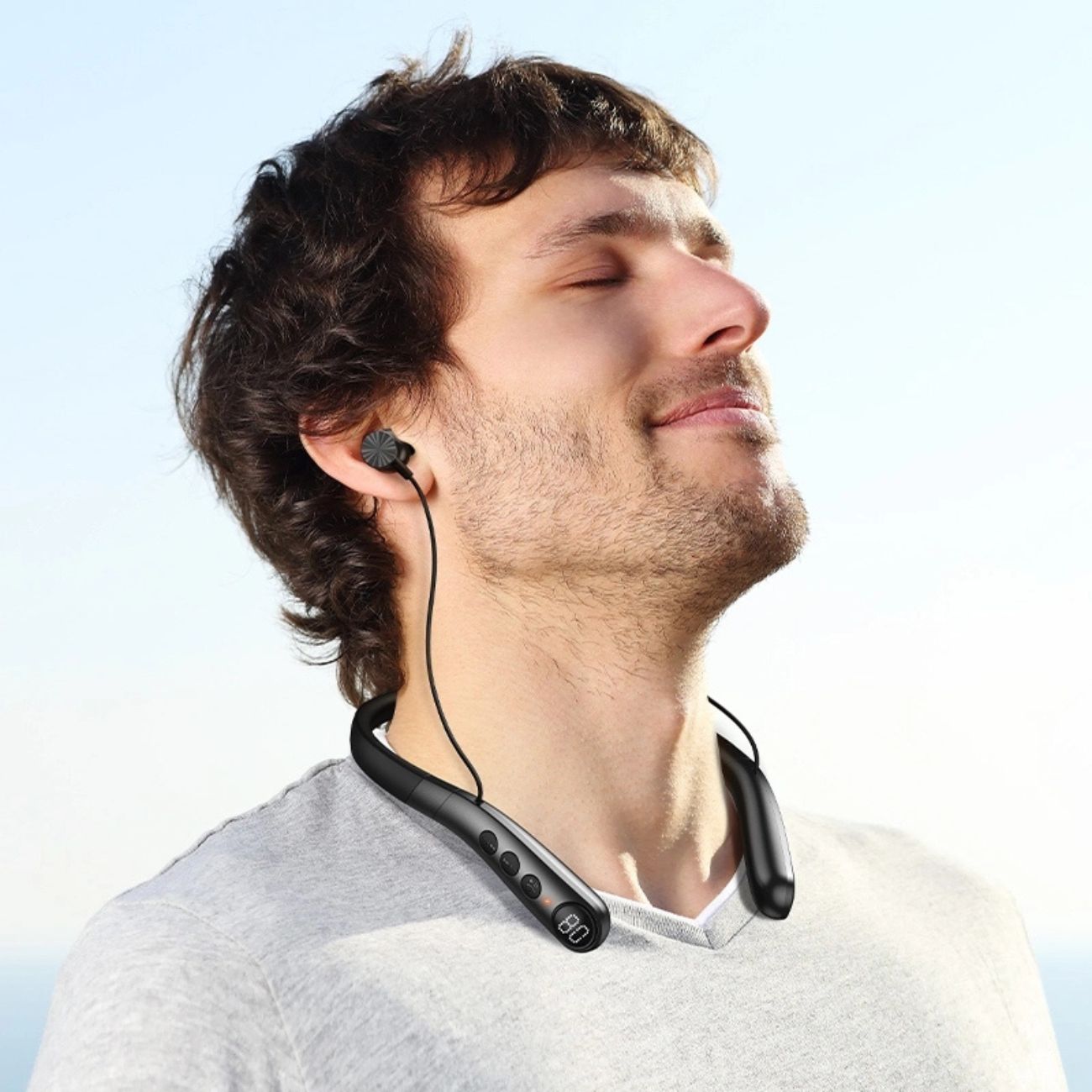 بخش گردنی این هدست معمولاً از مواد منعطف و سبک ساخته شده که وزن کمی به گردن وارد میکند و حس راحتی طولانیمدت را فراهم میسازد. گوشیهای این هدست دارای خاصیت مگنتی (آهنربایی) هستند؛ به این معنی که هنگامی که از آنها استفاده نمیکنید، گوشیها به هم متصل شده و مانند یک گردنبند روی سینه شما آویزان میمانند و از افتادن و آسیب دیدن جلوگیری میکنند. این ویژگی برای نگهداری در کیف یا جیب نیز بسیار کاربردی است.