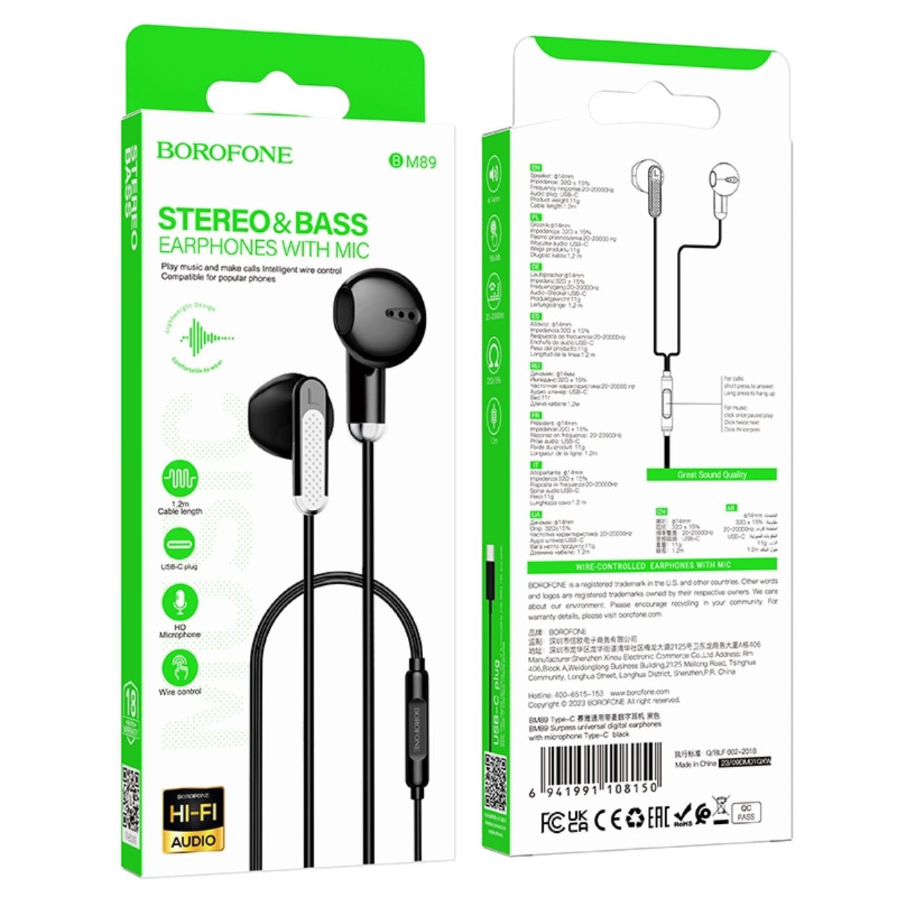 هندزفری سیمی بروفون Borofone BM89 Type-C Wired Handsfree Black