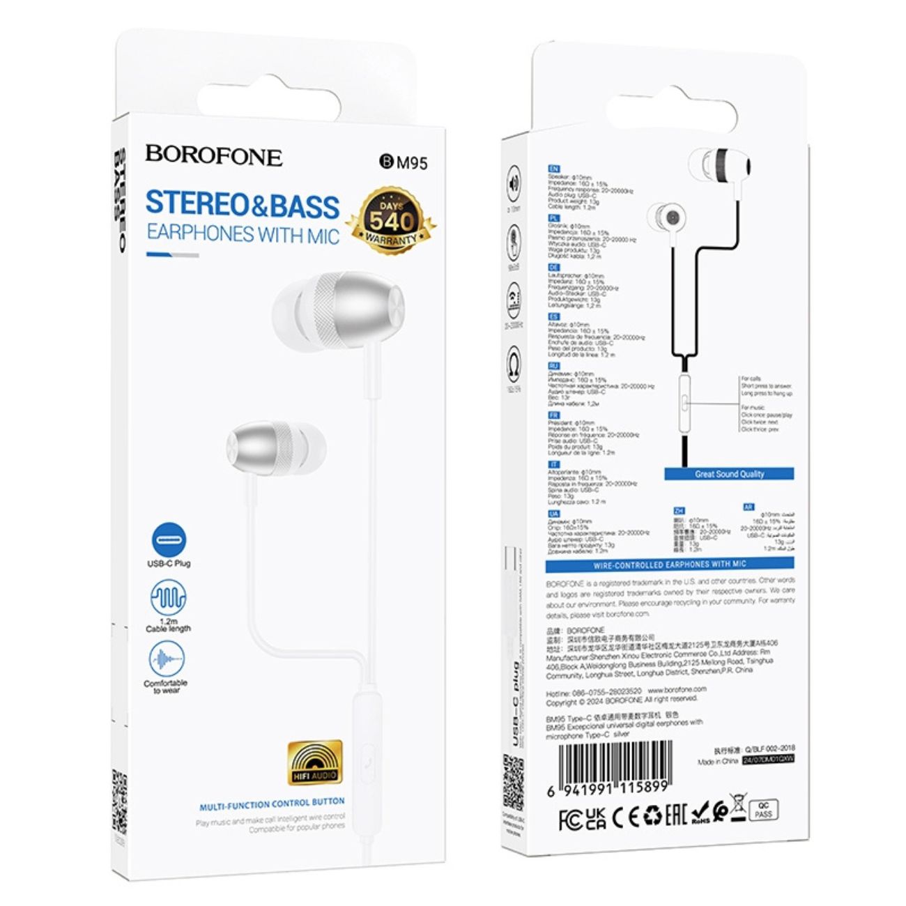 هندزفری دارای میکروفون داخلی و کلیدهای کنترلی روی کابل است. شما می‌توانید تماس‌ها را پاسخ دهید یا قطع کنید (Answer/Hang up)، و موسیقی را با کنترل Play/Pause/Next/Previous مدیریت کنید. این ویژگی باعث می‌شود BM95 برای استفاده روزمره — چه گوش دادن موزیک، چه تماس تلفنی — کاملاً مناسب باشد.