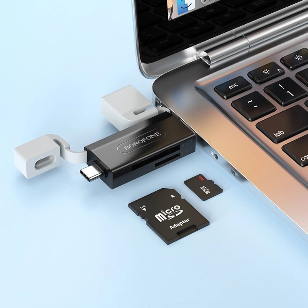 ویژگی برجسته Borofone DH9 وجود دو نوع رابط اتصال در یک دستگاه است: USB-A 2.0 (برای اتصال به لپتاپها و کامپیوترهای قدیمی و رایج) و USB-C (برای اتصال مستقیم به گوشیهای هوشمند، تبلتها و مکبوکهای جدید). این طراحی 2 در 1 نیاز شما به حمل مبدلهای اضافی را برطرف میکند.