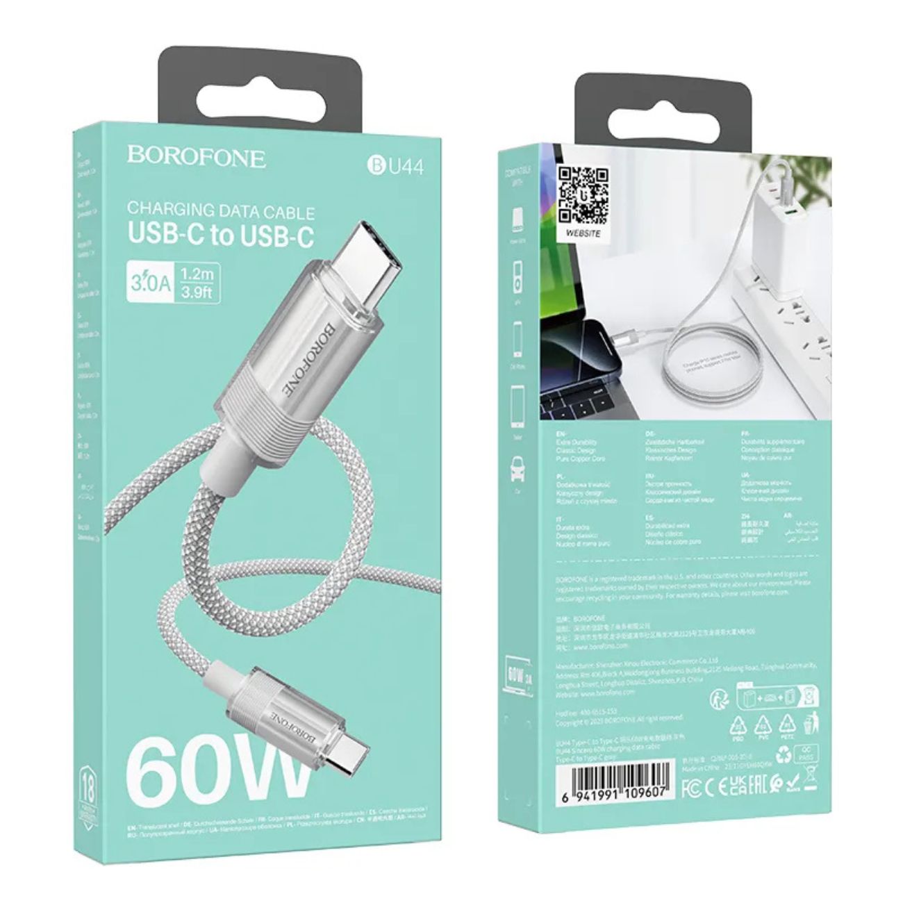 کابل شارژ 60 وات تایپ سی به تایپ سی بروفون Borofone USB-C to USB-C 60W Charging Cable Gray
