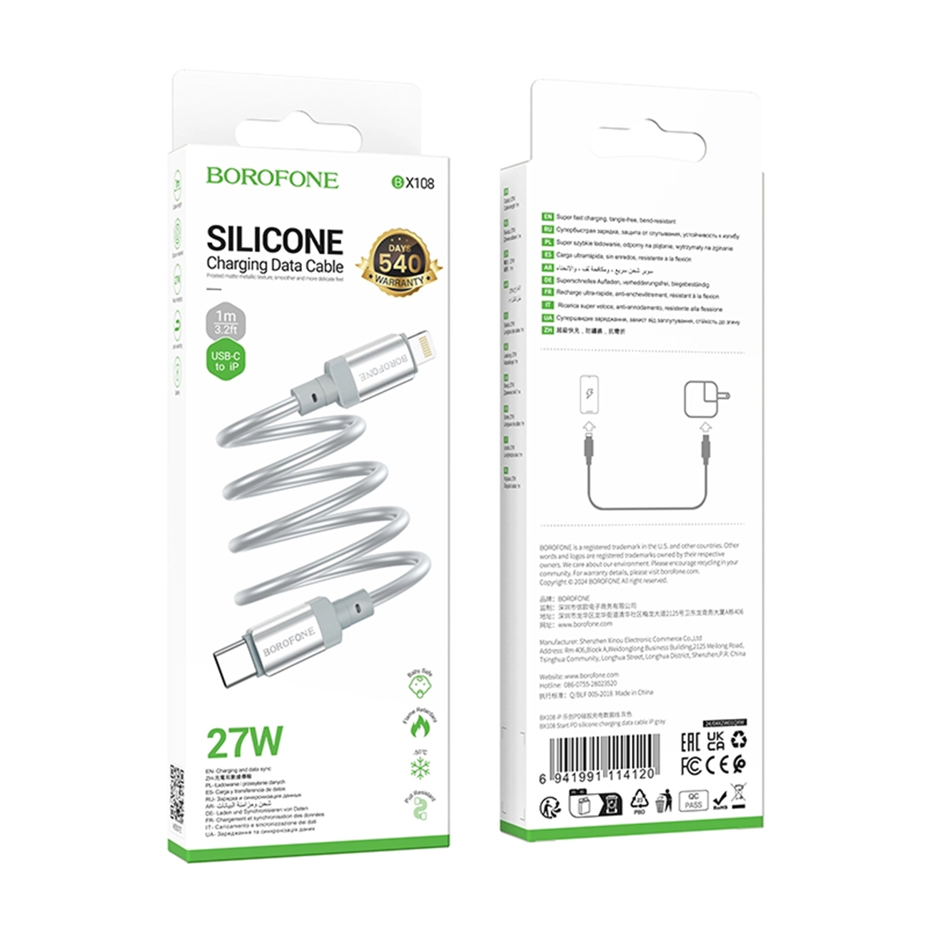 کابل شارژ فست شارژ 27 وات لایتنینگ به یواس‌بی-سی بروفون (Borofone BX108) یک لوازم جانبی ضروری برای کاربران دستگاه‌های اپل (آیفون و آیپد) است که به دنبال سرعت و کارایی بالا در شارژ هستند. این کابل با پشتیبانی از تکنولوژی شارژ سریع Power Delivery (PD) و توان خروجی حداکثر 27 وات، قادر است دستگاه‌های شما را با سرعتی بسیار بالاتر از کابل‌های استاندارد شارژ کند. این ویژگی برای کاربرانی که همیشه در حال حرکت هستند و نیاز به شارژ سریع در کمترین زمان ممکن دارند، یک مزیت بزرگ محسوب می‌شود.