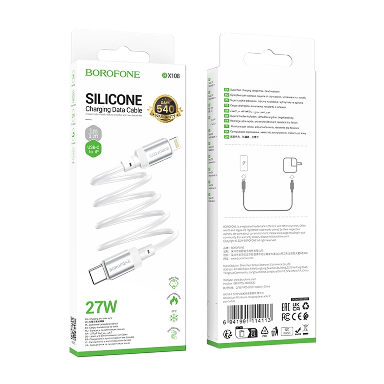 کابل شارژ فست شارژ 27 وات لایتنینگ به یواس‌بی-سی بروفون (Borofone BX108) یک لوازم جانبی ضروری برای کاربران دستگاه‌های اپل (آیفون و آیپد) است که به دنبال سرعت و کارایی بالا در شارژ هستند. این کابل با پشتیبانی از تکنولوژی شارژ سریع Power Delivery (PD) و توان خروجی حداکثر 27 وات، قادر است دستگاه‌های شما را با سرعتی بسیار بالاتر از کابل‌های استاندارد شارژ کند. این ویژگی برای کاربرانی که همیشه در حال حرکت هستند و نیاز به شارژ سریع در کمترین زمان ممکن دارند، یک مزیت بزرگ محسوب می‌شود.