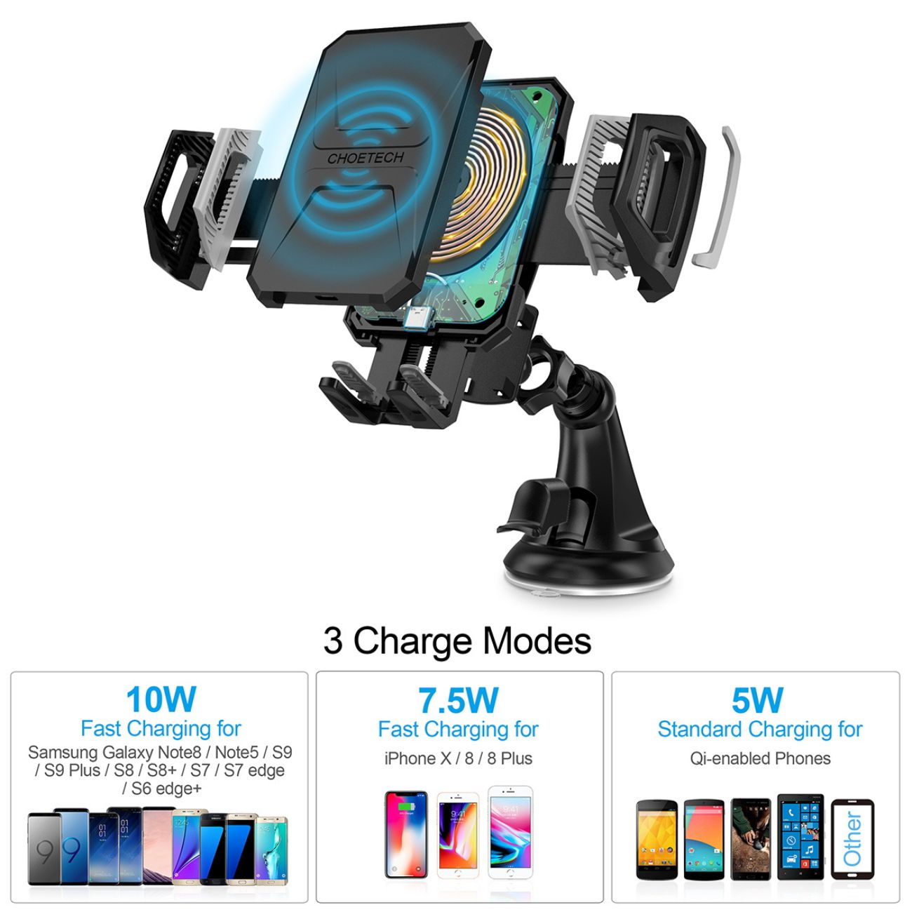 این شارژر بیسیم مناسب گوشیهای Qi-enabled است، از جمله سریهای سامسونگ و آیفون (با حداکثر ۷.۵ وات برای iPhone و ۱۰ وات برای Samsung) هنگامی که از آداپتور QC ۲/۳ استفاده شود.