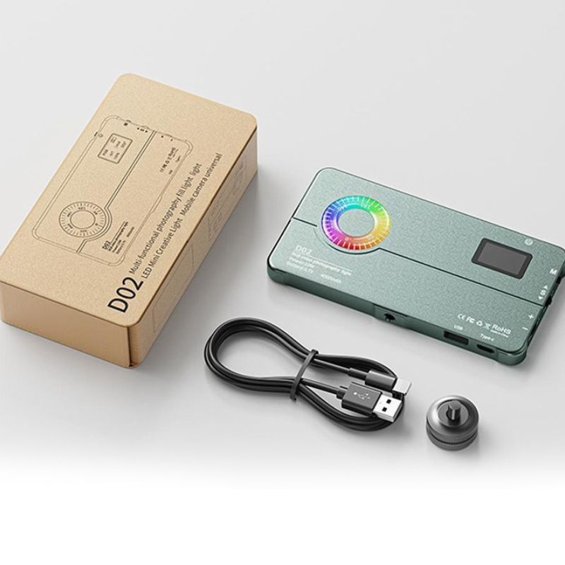 با D02 هر شات را حرفهای کنید؛ نور LED پرقدرت، رنگهای RGB بینهایت، افکتهای نوری جذاب و باتری بادوام—all in one!